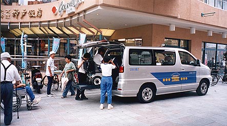 買い物客も足を止めて 「ホー、楽ちんやなあ」