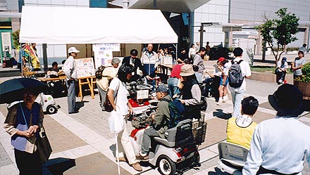電動スクーターで、会場体験ツアー。