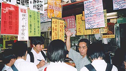 特売のお知らせの中に「歓迎、神戸中学校様」も