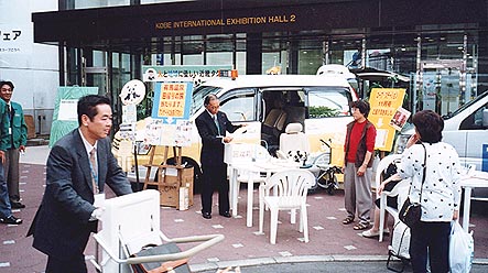 最終日、閉会直後に厳正なる抽選会。当選者の発表をするフェア事務局の梶原さん。