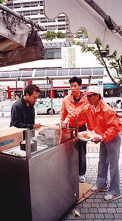 揚げたてコロッケの運搬役は近畿タクシーのボランティア。