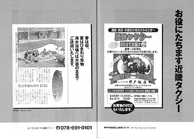 | 創刊号から引き続いて今回も弊社の広告を入れていただきました。今回は弊社の新しいサービスを紹介していただきながら、小松先生にレイアウトをしていただきました。大変感謝しております。ありがとうございました。 |