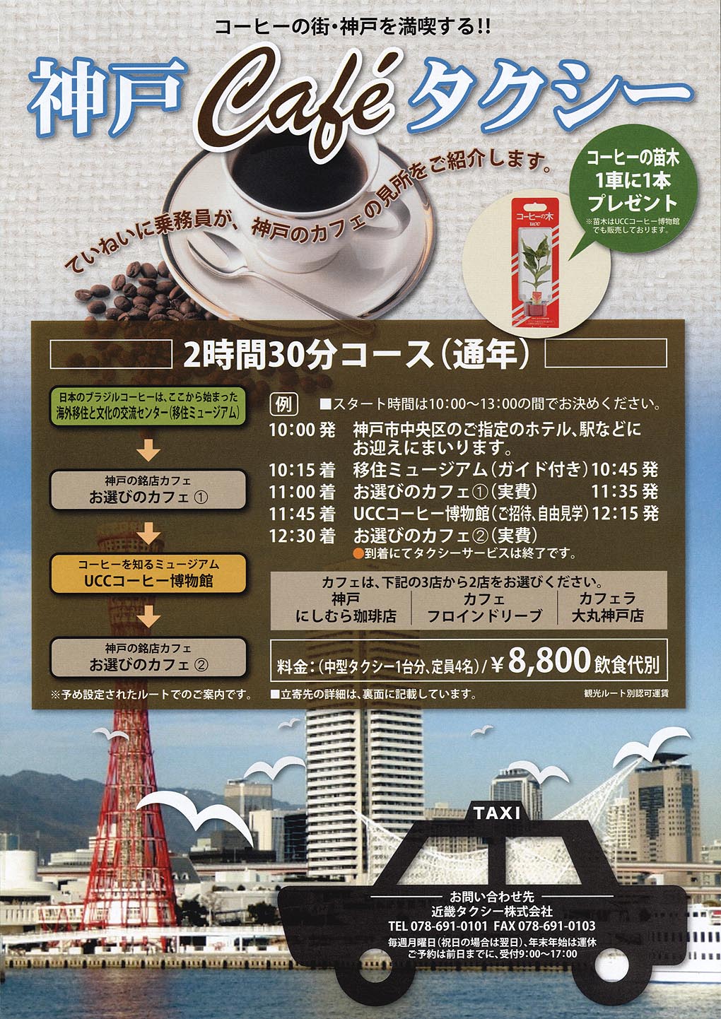 以下は、弊社 『神戸 Cafe タクシー』 のチラシより、転載しています。