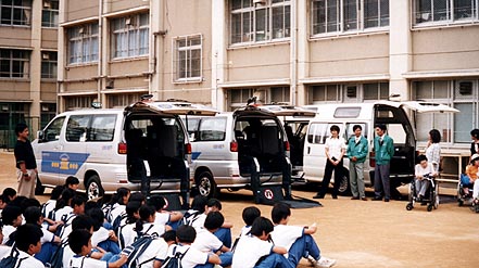 駒ヶ林中学校校庭で出発式の様子