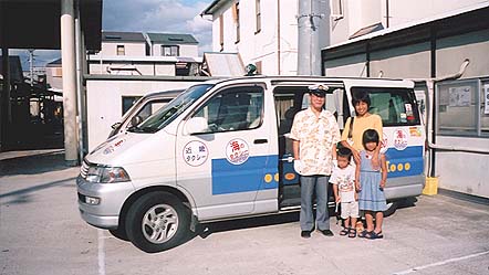 ご案内した車両「海のタクシー」 乗務員のアロハシャツはいかがでしょう? 乗務員「バスタオルもご用意しています。オプションで海水浴はいかがですか?」 加藤さん「今日は子供たちの水着を持ってこなかったので残念ですネ。」 乗務員「次回のご利用お待ち申し上げます。」 お子様「今からでも行きたい!!」