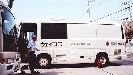 運転適正診断機器を4セット搭載したマイクロバス「ウェイブ号」