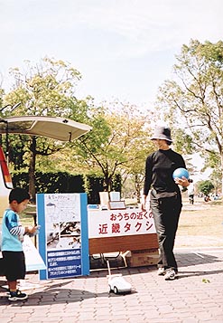 ラジコンカー「きんタク号」の運転、なかなかの腕前です。