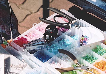ビーズ細工の七つ道具とポートキャブ。何かが起こりそうな予感が…。