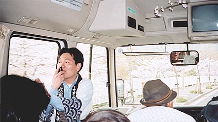 商店街の店主もバスガイドを買ってでます。笑いも出るツボを心得た案内ぶり。