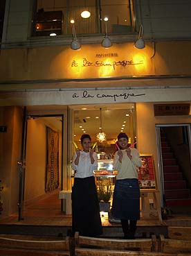 「ア・ラ・カンパーニュ」はスイーツの名店。 行列ができるまでのわずかな間隙をぬってホイップな笑顔でお出迎え。 お店の温かいおもてなしぶりが伝わってきます。