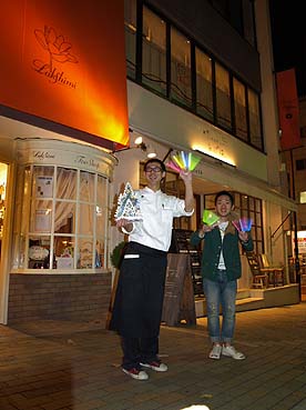 紅茶の専門店「ラクシュミー」のスタッフは少し早いクリスマスの飾り付けを持ってお出迎え。 トアロードに虹がかかった瞬間です。乗客とトアロードのお店の間に架け橋ができたようです。
