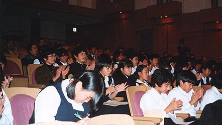熱心にメモをとる中学生。