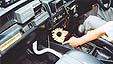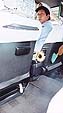 | (2) | エアコンの冷気吹出しを無駄のないようにします。 タクシー車両の冷気吹出し口の多くが客席に無く、乗務員の手元近くにあります。客席の快適な冷房を維持しようとすると、過度の冷気が運転席に集中します。いわゆるクーラー病にいたる場合もあります。そこで、ダクトを別に手作りで設け、冷気を分散して、無駄な冷気を無くすことを目指します。客席のお客様と、運転席の乗務員が共に心地よい快適な車内空間づくりを始めます。 (2004年夏から実施継続中) |