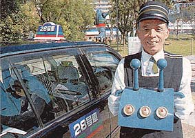 ![]() ツアー客を乗せる鉄人28号仕様のタクシー=神戸市長田区 |