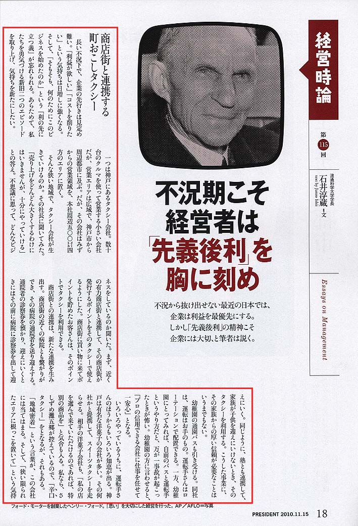 以下のページは「PRESIDENT プレジデント 2010年11月15日号」(発行所:プレジデント社)より転載しています。