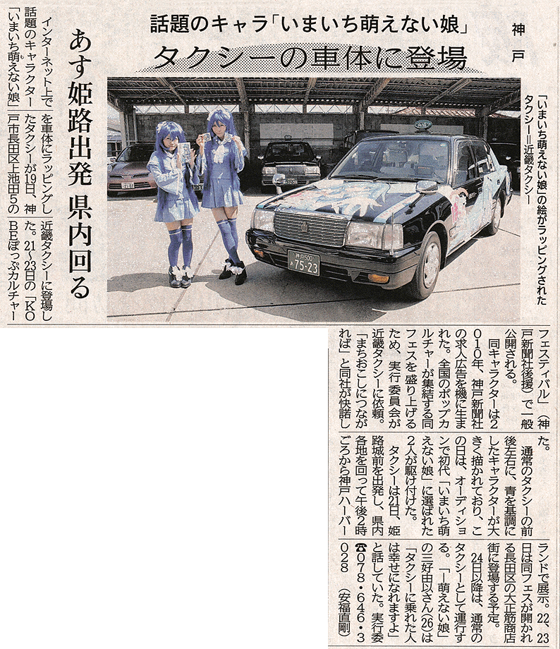 話題のキャラ「いまいち萌えない娘」 タクシーの車体に登場