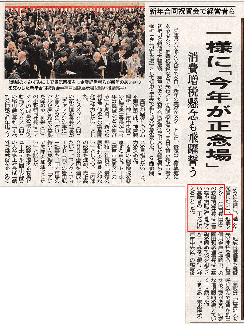 以下の記事は「神戸新聞 平成26年1月7日 朝刊」より抜粋し、転載しています。