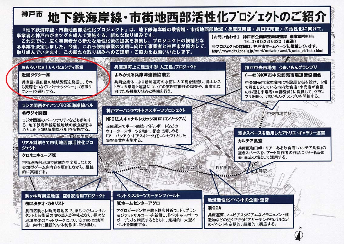 以下は、パンフレット「神戸市 地下鉄海岸線・市街地西部活性化プロジェクトのご紹介」(神戸市企画調整局調整課)より転載しています。 プロジェクトの詳細は、神戸市ホームページに掲載しています。 http://www.city.kobe.lg.jp/ward/activate/west/k_seibu_pj/index.html
