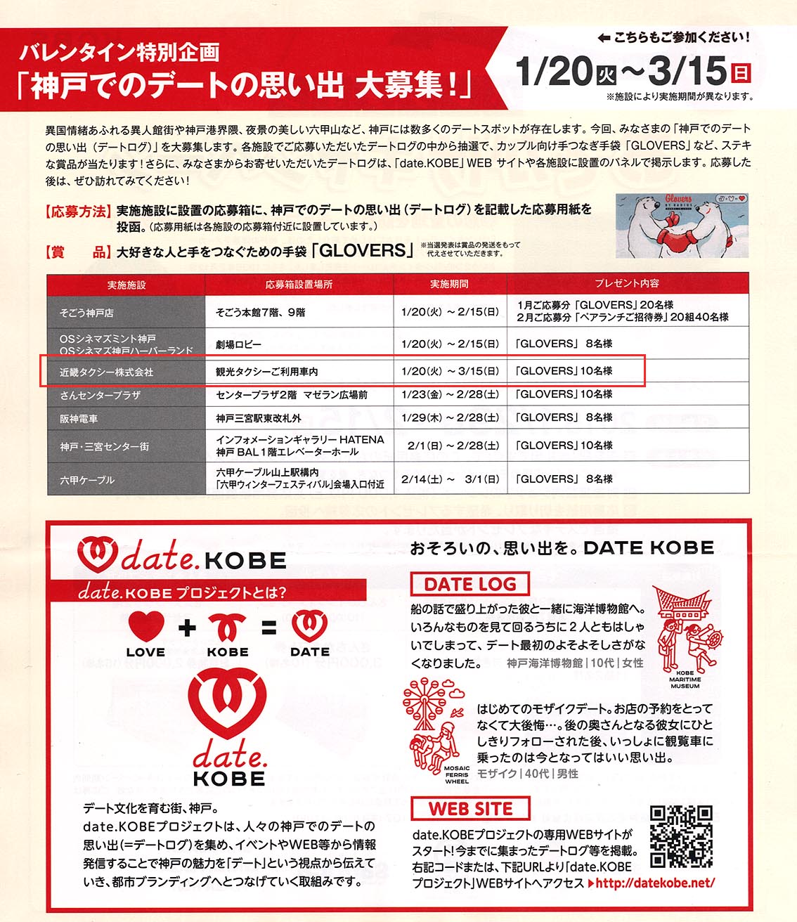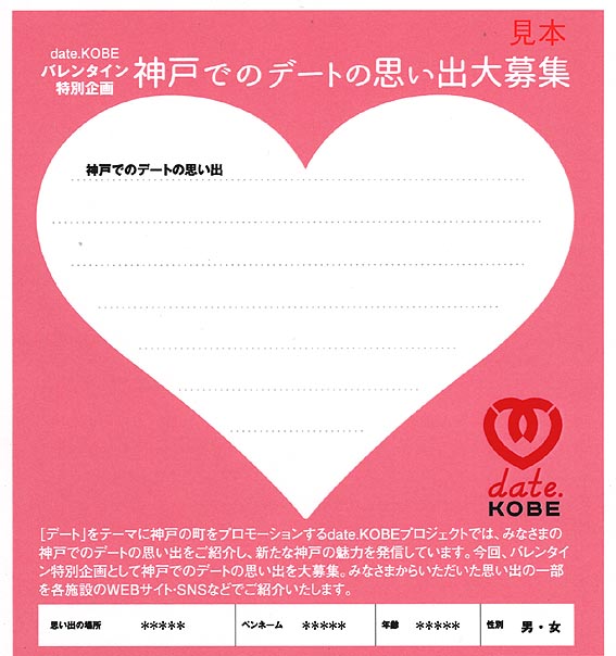 以下は、DATE KOBE パンフレット 「バレンタイン特別企画 『神戸でのデートの思い出 大募集!』」より、一部抜粋して転載しています。