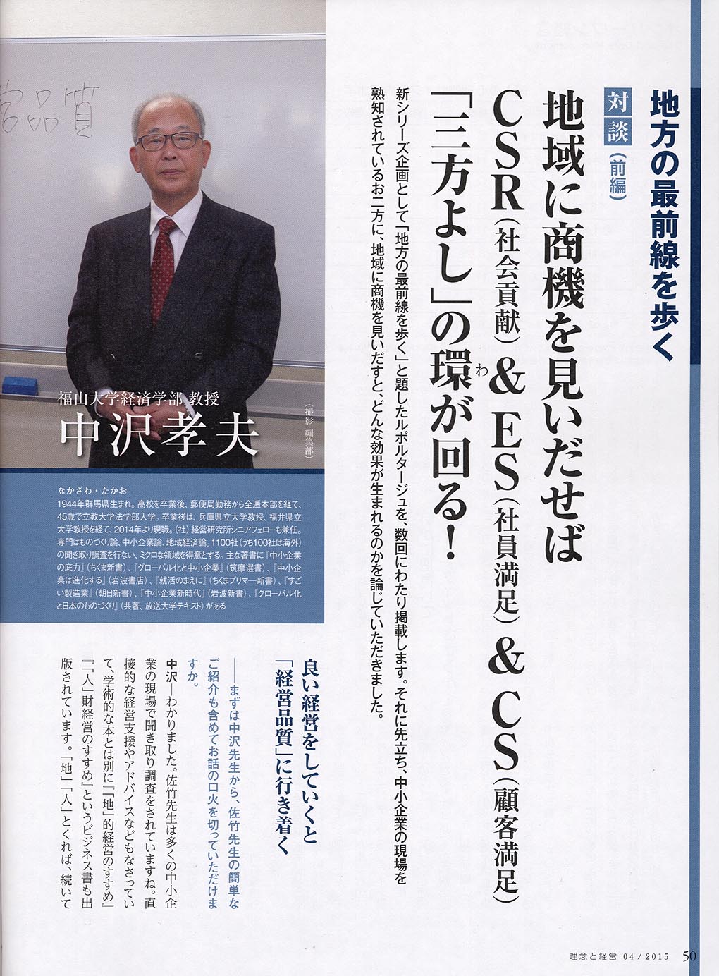 以下の記事は、「理念と経営」vol.112号 2015年4月号(発行:株式会社コスモ教育出版)より、転載しています。