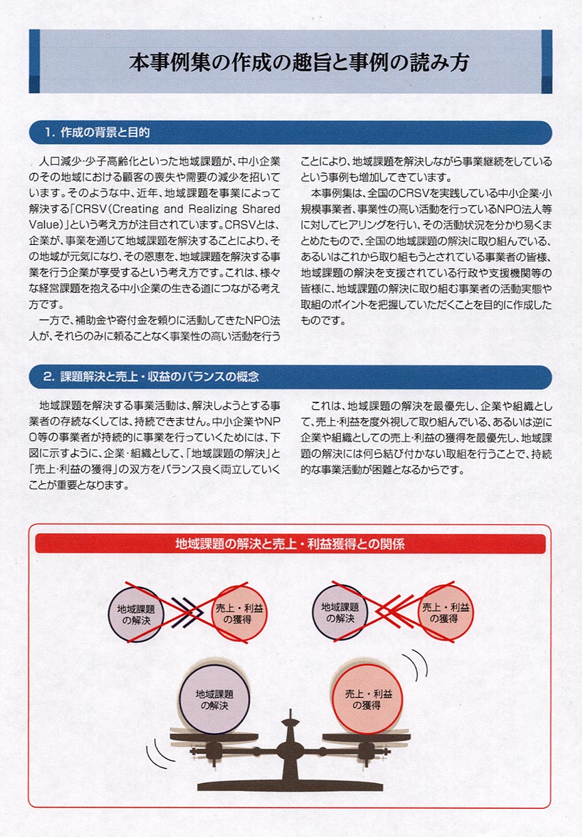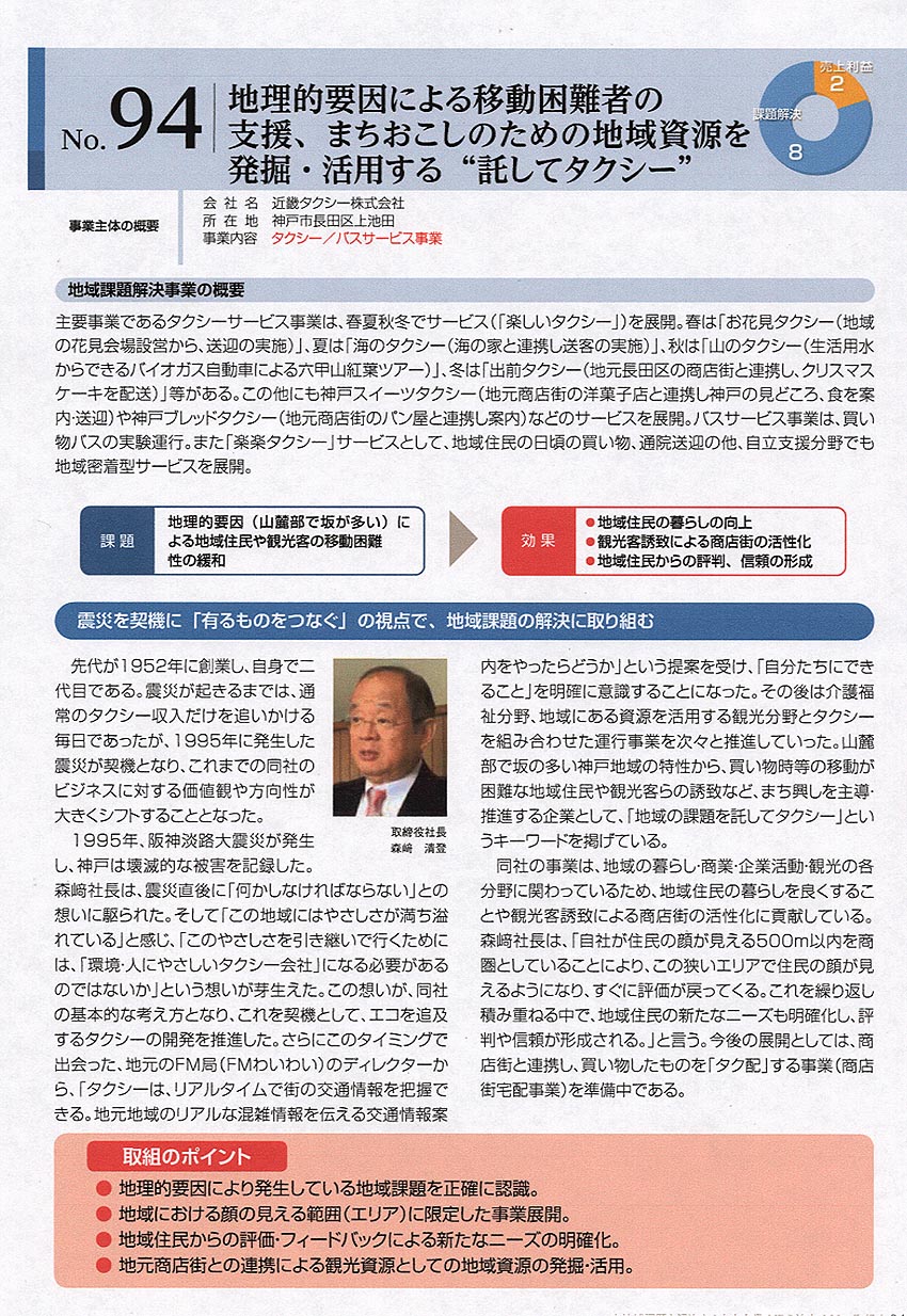 以下は、中小企業庁ホームページ内、 「地域課題を解決する中小企業・NPO法人 100の取組」 から一部抜粋して転載しています。