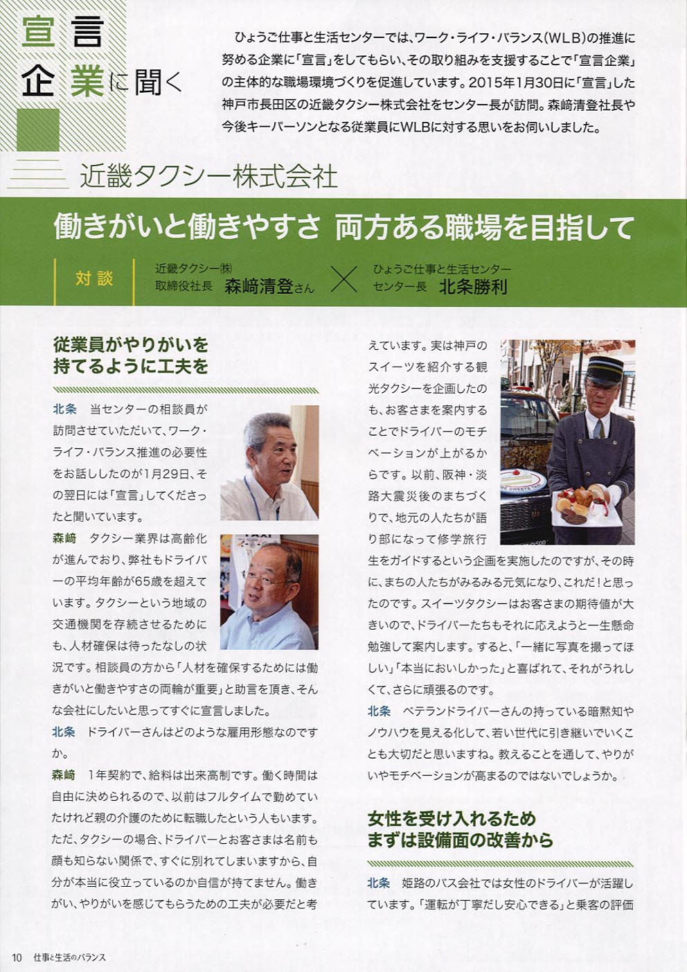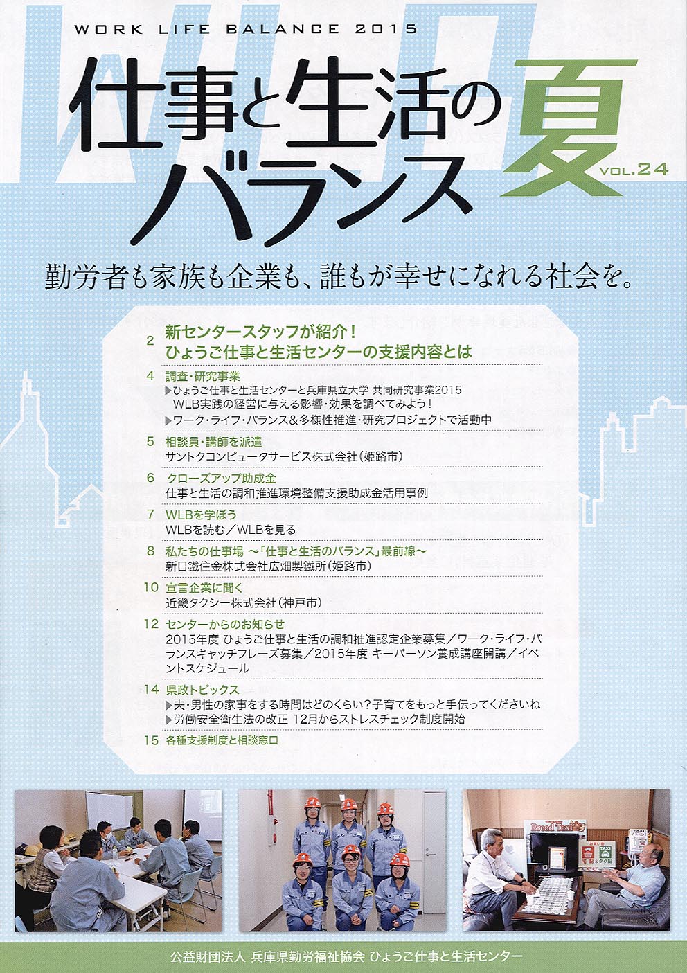 以下は、冊子「WORK LIFE BALANCE 2015 仕事と生活のバランス 夏号 VOL.24」(発行:公益財団法人 兵庫県勤労福祉協会 ひょうご仕事と生活センター)より、一部抜粋して転載しています。