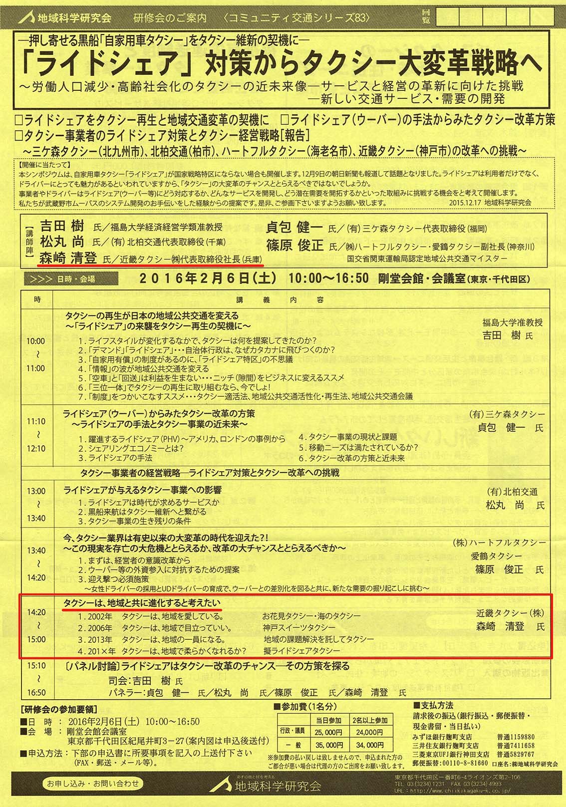 以下は、研修会チラシ 「『ライドシェア』 対策からタクシー大変革戦略へ」(研修会開催:地域科学研究会)より、一部抜粋して転載しています。