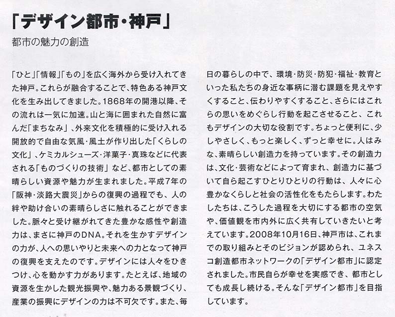 以下の記事は、デザイン都市・神戸 2015年度の取り組み 「 CITY OF DESIGN KOBE 2015 」 (発行:神戸市企画調整局創造都市推進部)より、一部抜粋して転載しています。