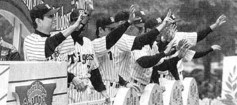 秋雨の大阪・御堂筋、神戸の繁華街に3日、65万人の感謝の歓声が響き、「六甲おろし」がこだました。18年ぶりのセ・リーグ優勝を成し遂げた「猛虎」に多くの人が夢中になった。「ほんまに、ありがとう」。そこかしこから感謝の声が飛び、最後の「縦じま」姿となった星野仙一前監督や選手たちが、手を振って応えた。 大阪市役所前でのセレモニーのあと、星野前監督や選手ら63人は3台のパレード車に乗って出発した。時速3キロ。 市役所前で、大阪市東住吉区の保育士藤村美里さん(26)は「かんとく、ありがとう。だいすき」とハート形の紙を掲げた。「もう、涙が出そうです」 強い雨を、切り裂いてジェット風船が飛ぶ。59年に南海ホークスの「涙の御堂筋パレード」を見た大阪市住之江区の無職黒木繁さん(68)は、「生きているうちにタイガースのパレードを見ることができて…」と感無量。沿道の「子ども・障害者ゾーン」では奈良県三郷町の小学1年生、巽恒太君(7)が「井川投手のような格好いい野球選手になりたい」とはしゃいだ。 午後からは、興奮が神戸に移った。 「長田に夢と勇気をありがとう」。神戸・長田の草野球チーム「ぼっかけーず」のメンバーは、プラカードを揺すってアピールした。「ネバー・ネバー・サレンダー(決してあきらめない)」という星野阪神のキャッチフレーズを、震災で落ち込んだ長田の街づくりの理念と重ね、新名物「ぼっかけ」の売り出しに取り組んできた。 監督でタクシー会社社長の森崎清登さん(50)は「選手たちは達成感を味わったいい表情をしてたが、長田はまだ1回表が終わったところ。これからもへこたれんと、もらった勇気を生かしたい」と笑顔を見せた。 感謝せないかん 星野仙一前監督 パンツの中までぐしょぬれになった。だけど、沿道の人たちはもっと何時間もいたわけだろう。感謝せないかん。 雨はうれし涙 桧山進次郎外野手 雨は全国の阪神ファンのうれし涙だと思う。見ていたおじいさん、おばあさんが泣いていたのが印象的だった。18年も空いたらいけませんね。 |