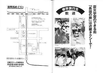 | 創刊号から引き続いて今回も弊社の広告を入れていただきました。今回は「長田の街」に修学旅行生をお迎えした時の様子を題材に小松先生にレイアウトをしていただきました。大変感謝しております。ありがとうございました。 |