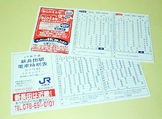 平成15年3月15日改正のJR神戸線新長田駅電車時刻表に弊社広告が掲載されています。