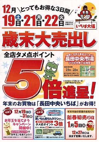平成21年 12月19日(土)・21日(月)・22日(火) 20日(日)は休業日です