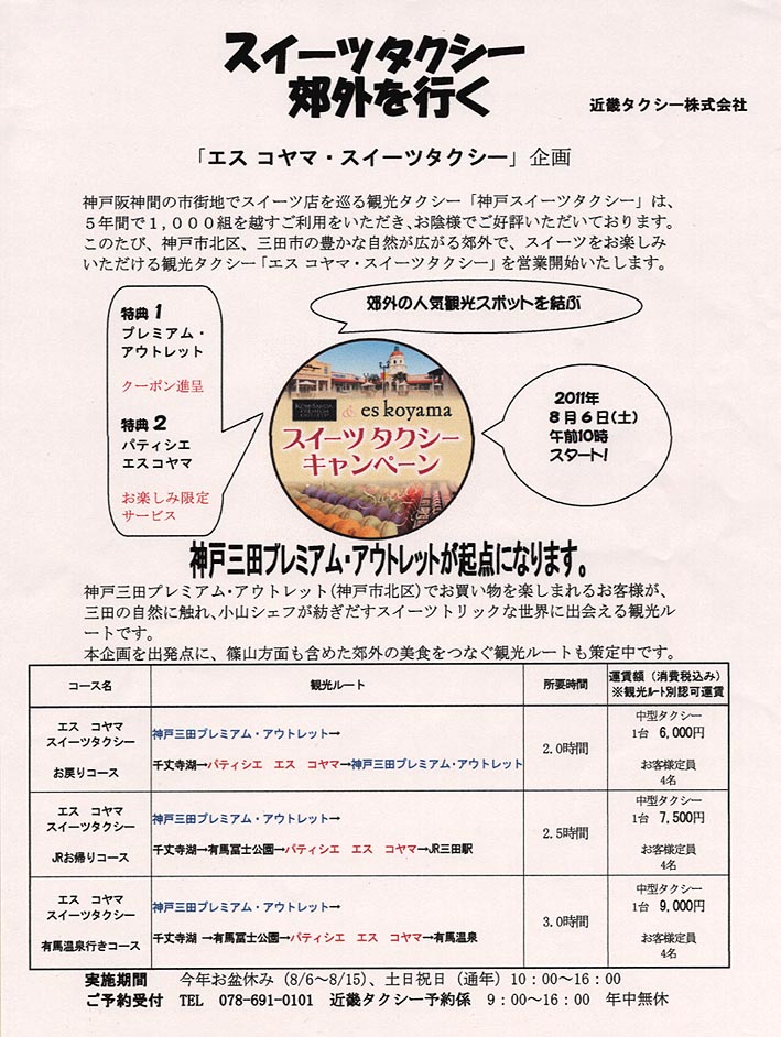 神戸三田プレミアムアウトレット スイーツタクシー × es koyama はこちらをご覧下さい
